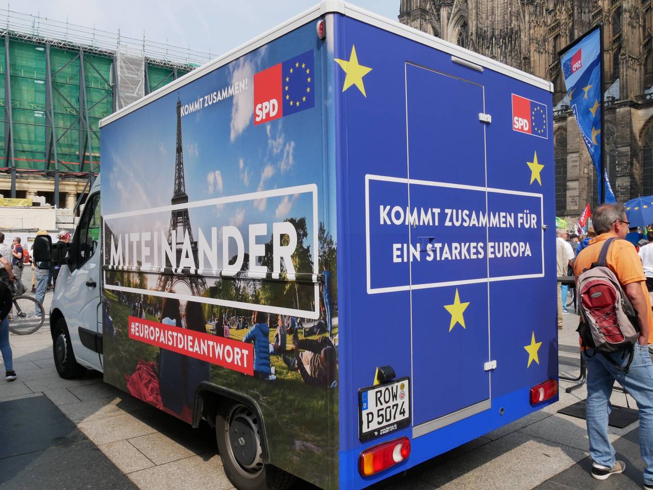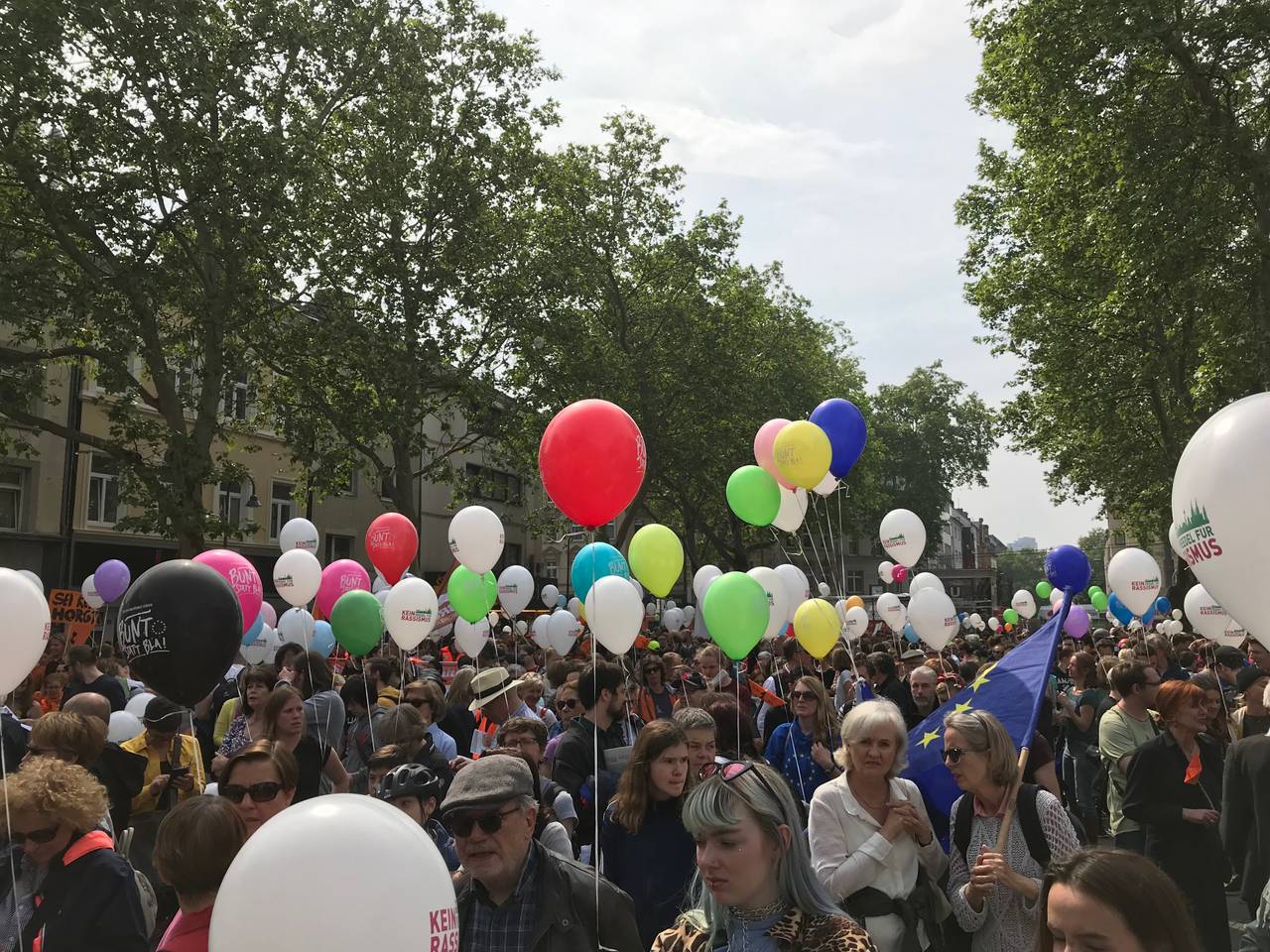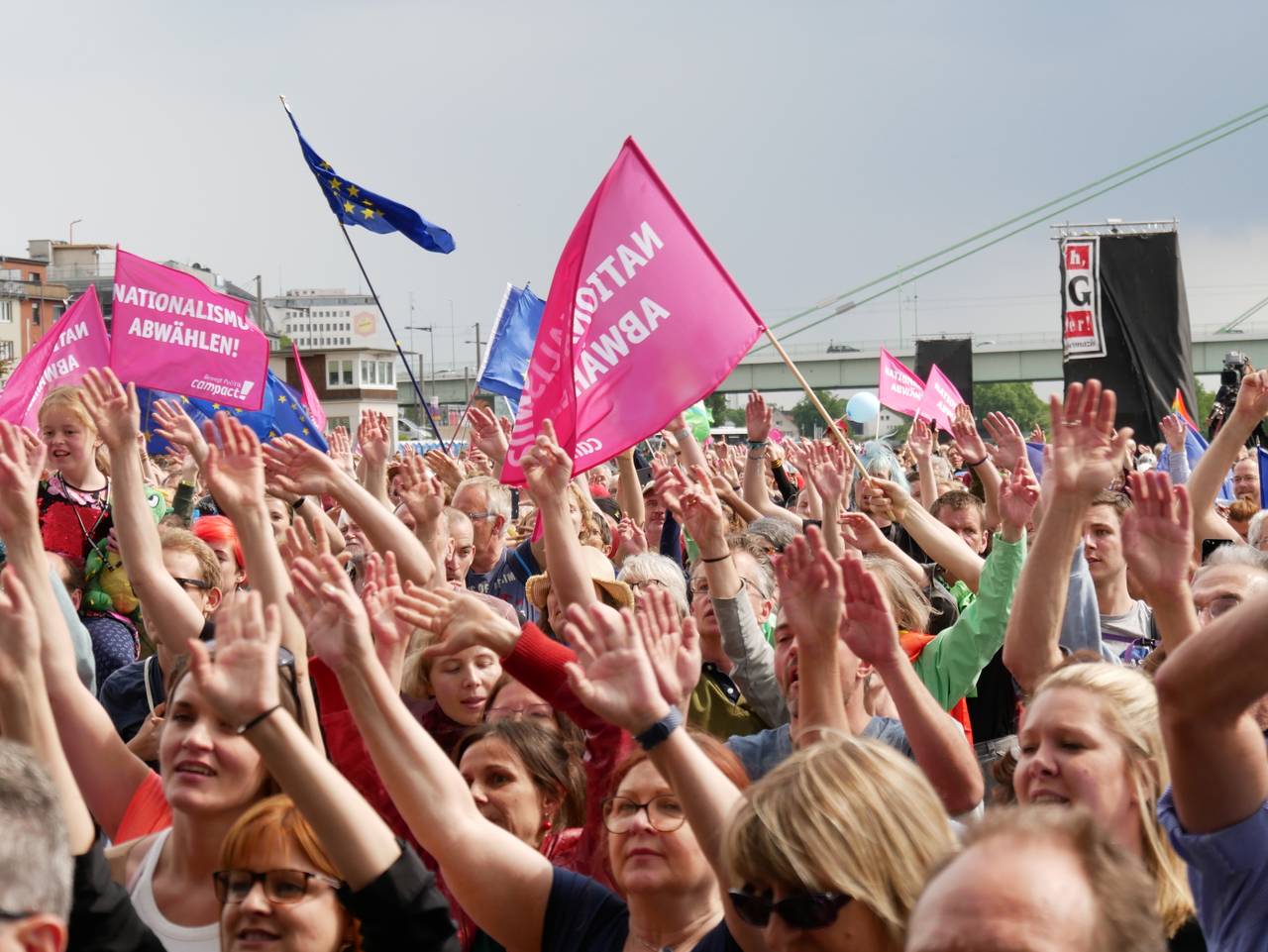 Eine Woche vor dem Urnengang stand Köln am Sonntag komplett im Zeichen der Europawahl. Ein Bündnis aus über 70 Verbänden und Organisationen hatte für Sonntag unter dem Motto „Ein Europa für alle – Deine Stimme gegen Nationalismus“ zu einer Demo an der Deutzer Wert aufgerufen.