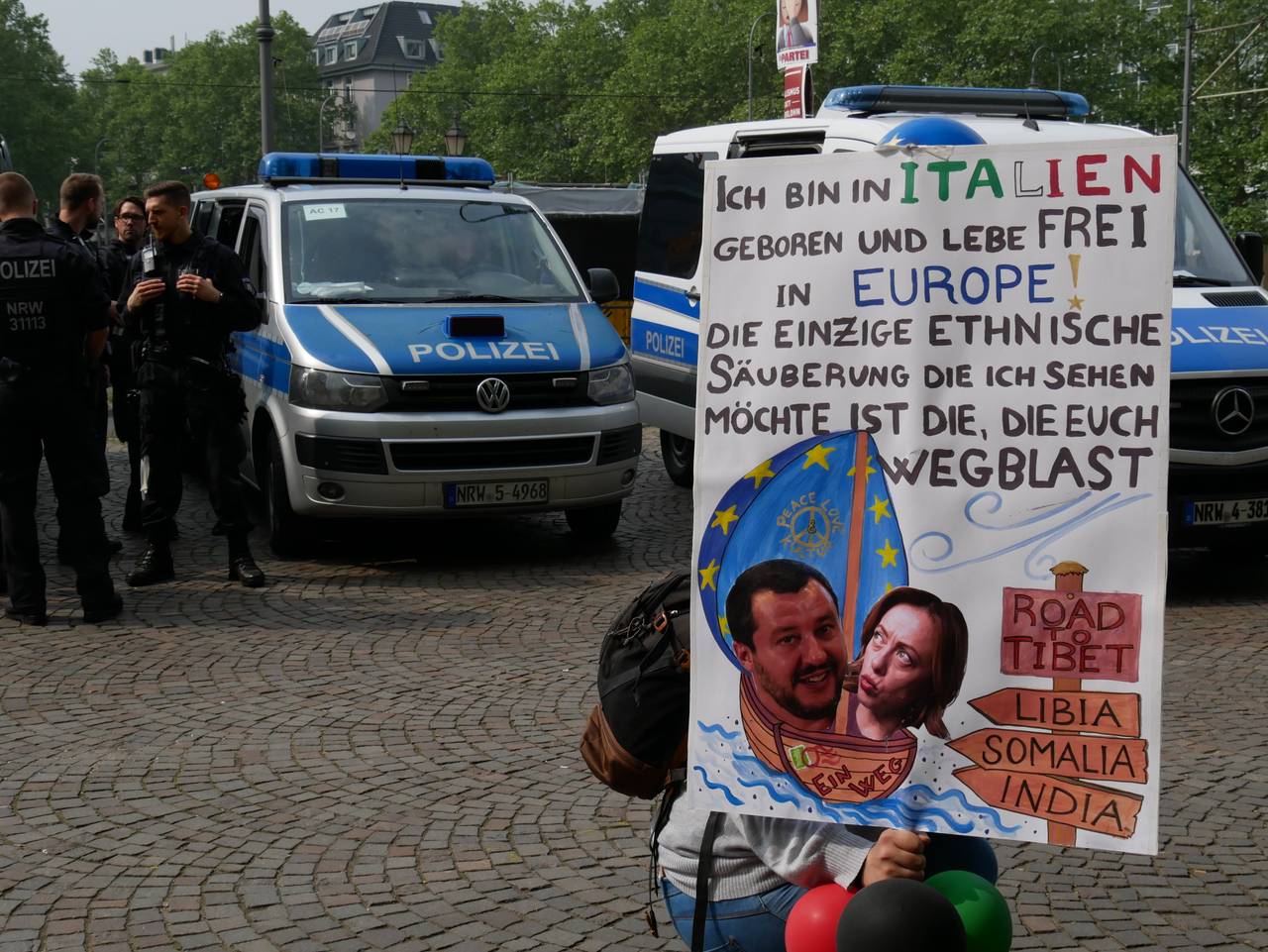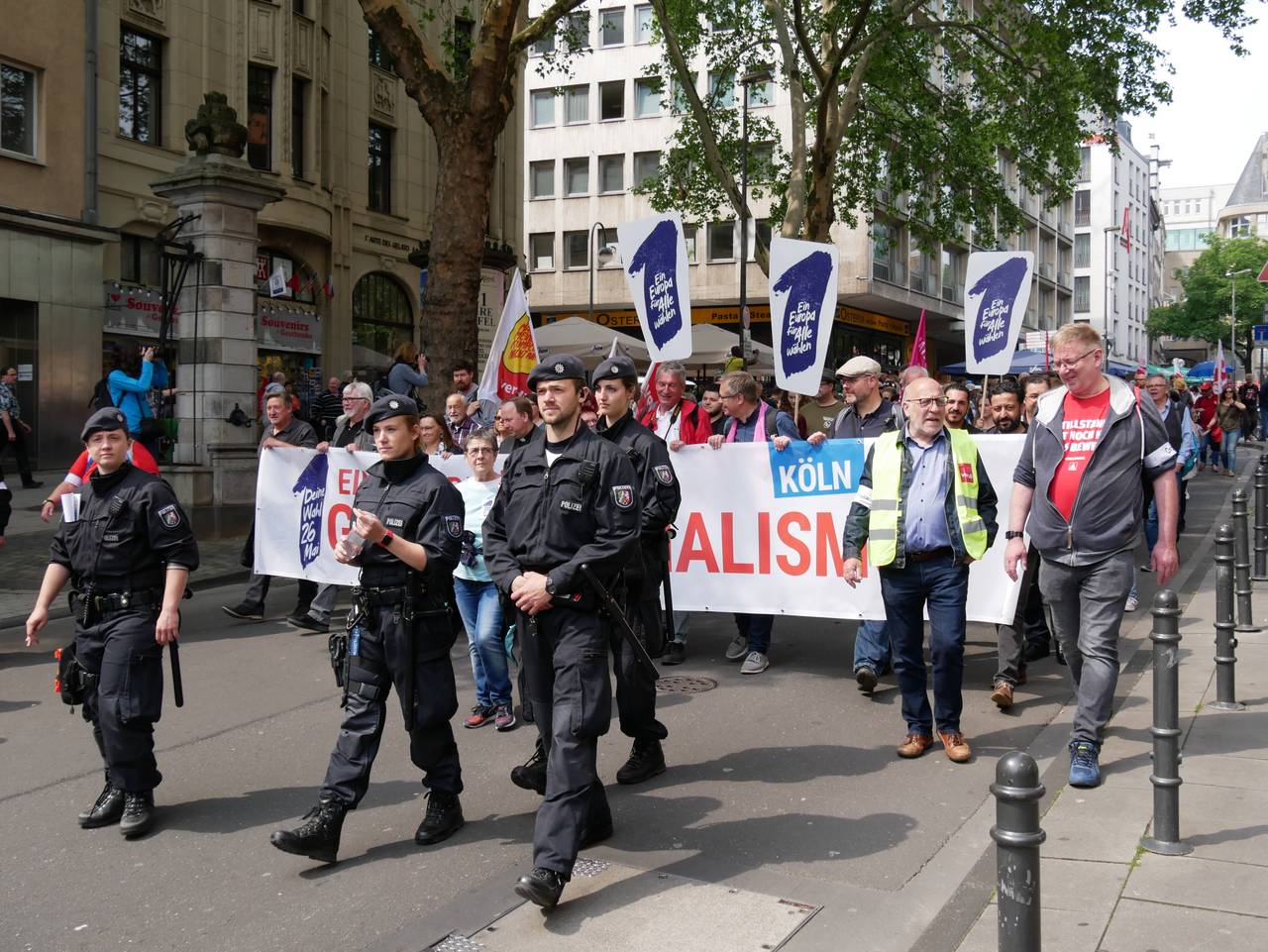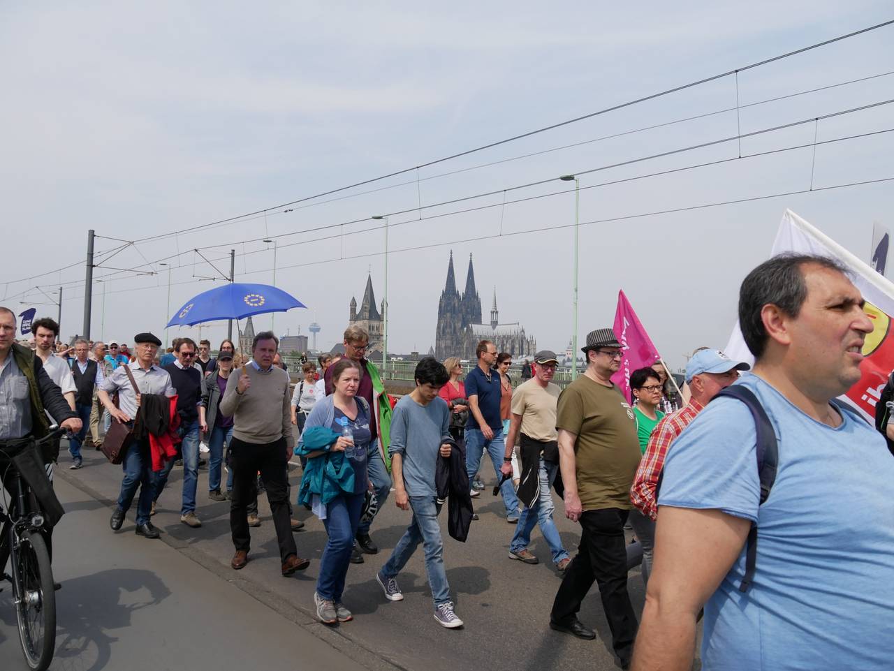 11.40 Uhr: Die Demonstranten, die sich am Dom versammelt haben, ziehen jetzt los Richtung Deutzer Werft.