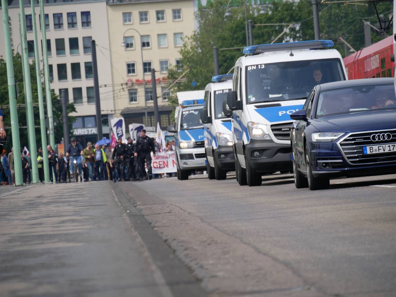 13.57 Uhr: Laut Polizei sind alle Demonstranten mittlerweile in Deutz angekommen. Die Siegburger Straße ist momentan zwischen der Deutzer und der Severinsbrücke für den Autoverkehr gesperrt. Die Linie 7 fährt aber wieder.
