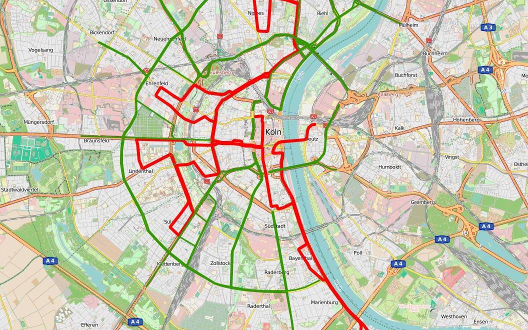 Betroffen sind die Stadtteile Innenstadt, Deutz, Bayenthal, Rodenkirchen, Sülz, Lindenthal, Ehrenfeld, Nippes, das Severinsviertel, die Ringe sowie die Rheinuferstraße.