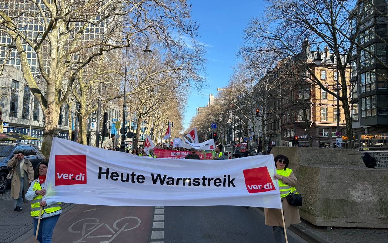 Im Tarifstreit des Öffentlichen Dienstes ist keine Einigung in Sicht, deshalb soll vor der nächsten Verhandlungsrunde noch mal ordentlich Druck gemacht werden. Das passiert am Montag durch den Warnstreik des Personals am Kölner Flughafen. Mittwoch sollen dann die Beschäftigten der KVB, aller städtischen Kitas sowie Krankenhäuser, der AWB, der Stadtentwässerungsbetriebe und der RheinEnergie in Köln zum Warnstreik aufgerufen werden.