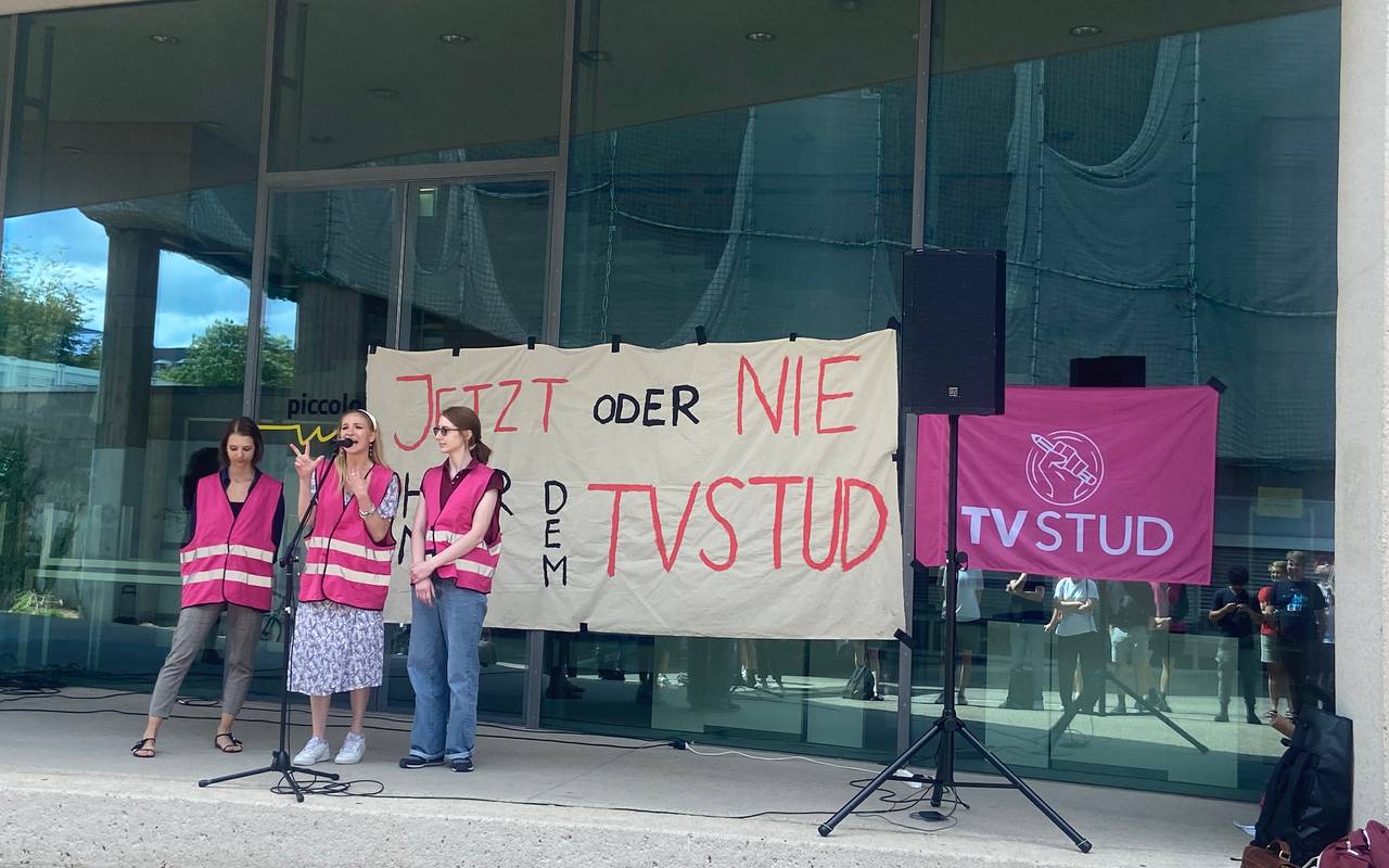 (KS) Die Initiative TV-Stud hat am Mittwoch an der Uni Köln protestiert. Grund dafür seien schlechte Arbeitsbedingungen für Studierende an der Universität.