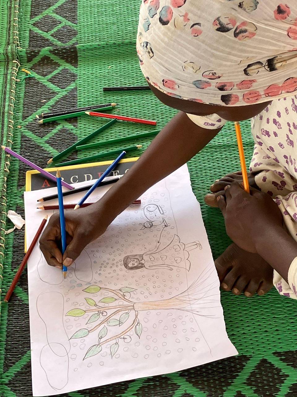 Am Anfang haben die Flüchtlingskinder Waffen und Flammen gemalt - nach Monaten malen sie wieder Blumen.