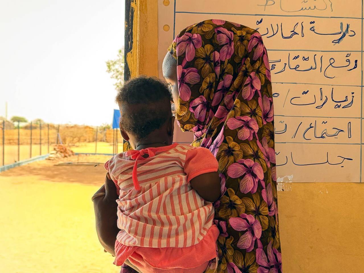 Auch nach der Flucht sind Frauen und Mädchen durch Gewalt gefährde - Wahiba hält ihr Kind auf dem Arm.