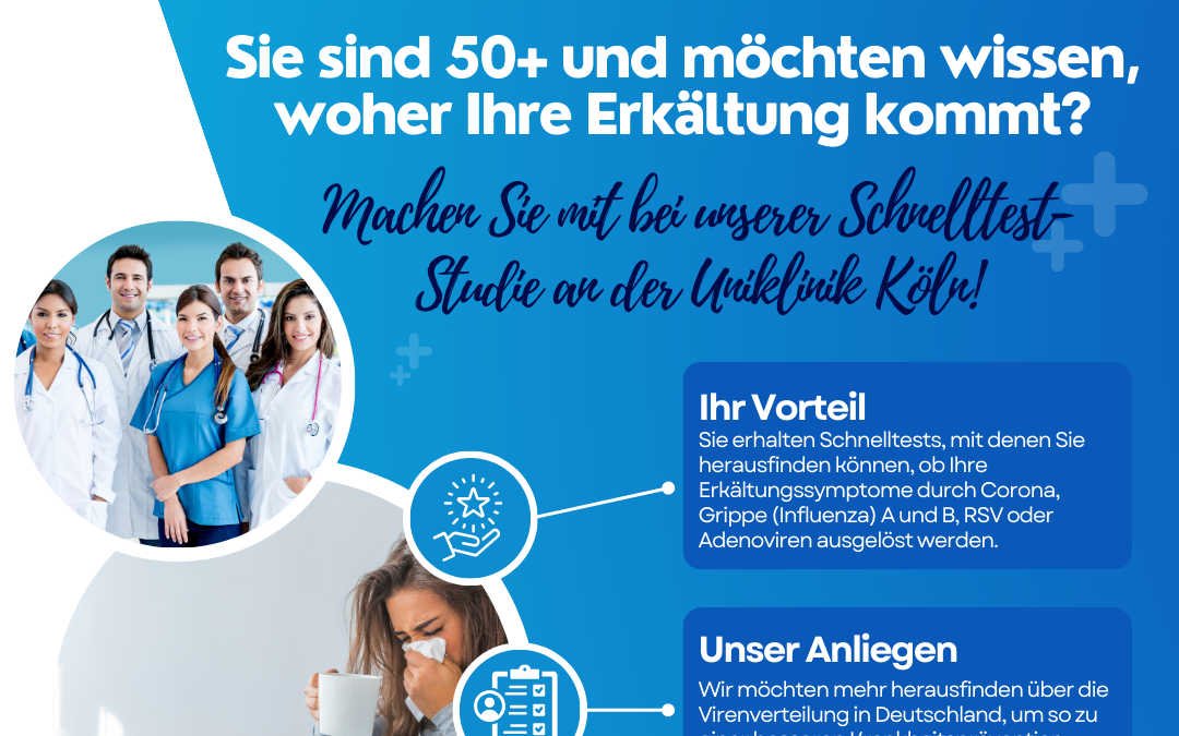 Dafür bekommen Probanden regelmäßige Schnelltests, wie bei Corona, die dann von der Uniklinik ausgewertet werden. Die Studie läuft über ein Jahr. Mitmachen kann jeder ab 50 Jahren.