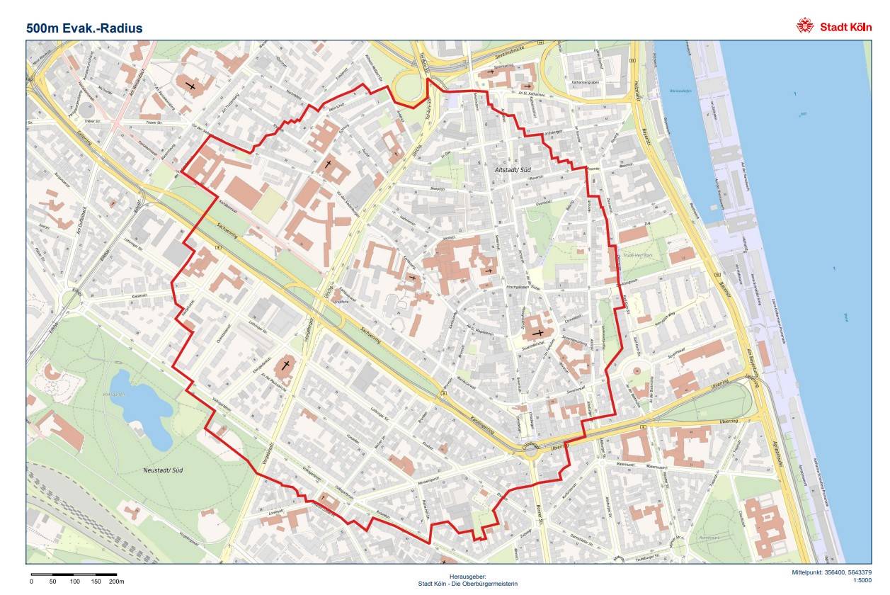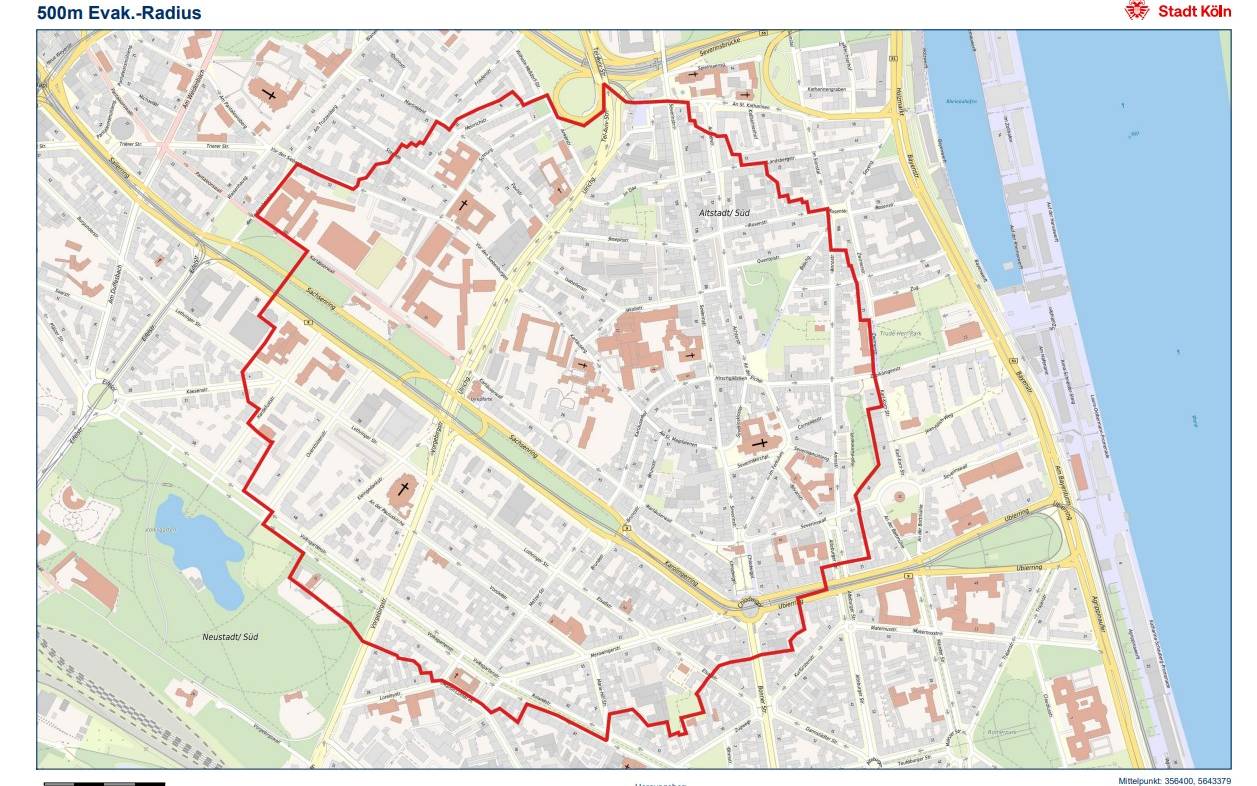 Sollte sich ein Blindgänger bestätigen, würde er am Donnerstag, 11. September, ausgegraben und entschärft werden. Mögliche Evakuierungen stehen noch nicht fest, könnten aber rund 13.000 Anwohnerinnen und Anwohner betreffen. Sollte es zu Evakuierungen kommen, dann erfahrt ihr das am Mittwoch. Die Stadt Köln empfiehlt, dass ihr euch aber schon jetzt auf der Karte zum potenziellen Evakuierungsradius informiert und zu checkt, ob ihr eure Wohnung verlassen müsstet. Die Karte findet ihr hier im Artikel.