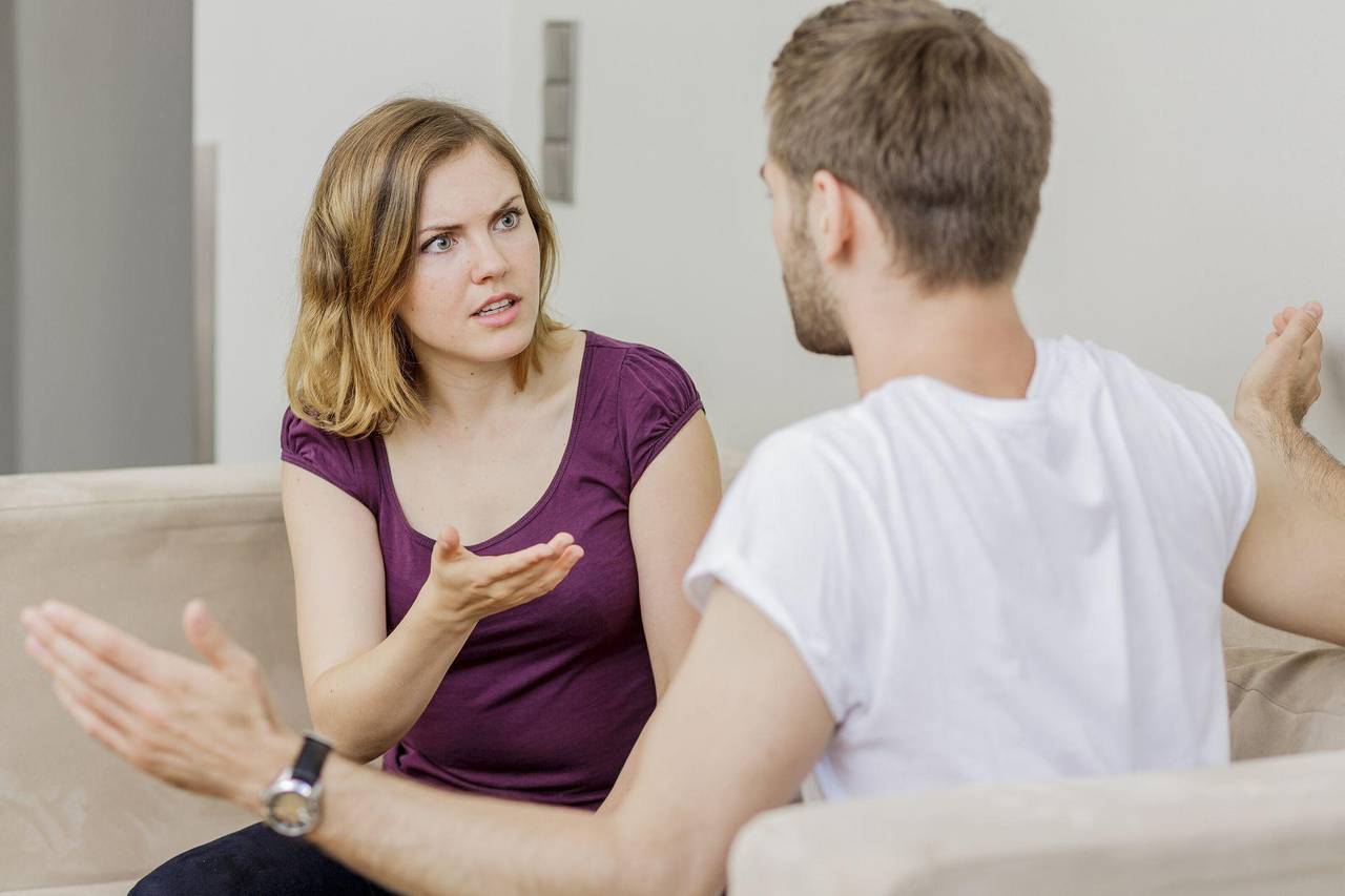 Frau spricht wütend mit ihrem Partner