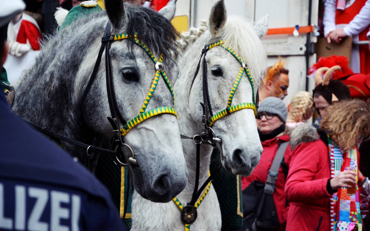 Seit Jahren sind die Pferde im Rosenmontagszug ein Thema für Diskussionen. Etwa 220 Pferde ziehen heute mit dem Zoch durch die City. Vorher haben mehrere Tierärztinnen und -ärzte die Pferde, Kutschen und die Transportfahrzeuge kontrolliert.