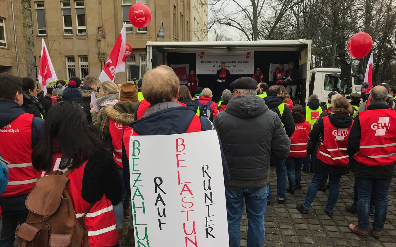 (SR) 350 Lehrerinnen und Lehrer haben sich am Dienstag in Köln am Warnstreik der Lehrergewerkschaft GEW beteiligt. Das teilte die Gewerkschaft mit.