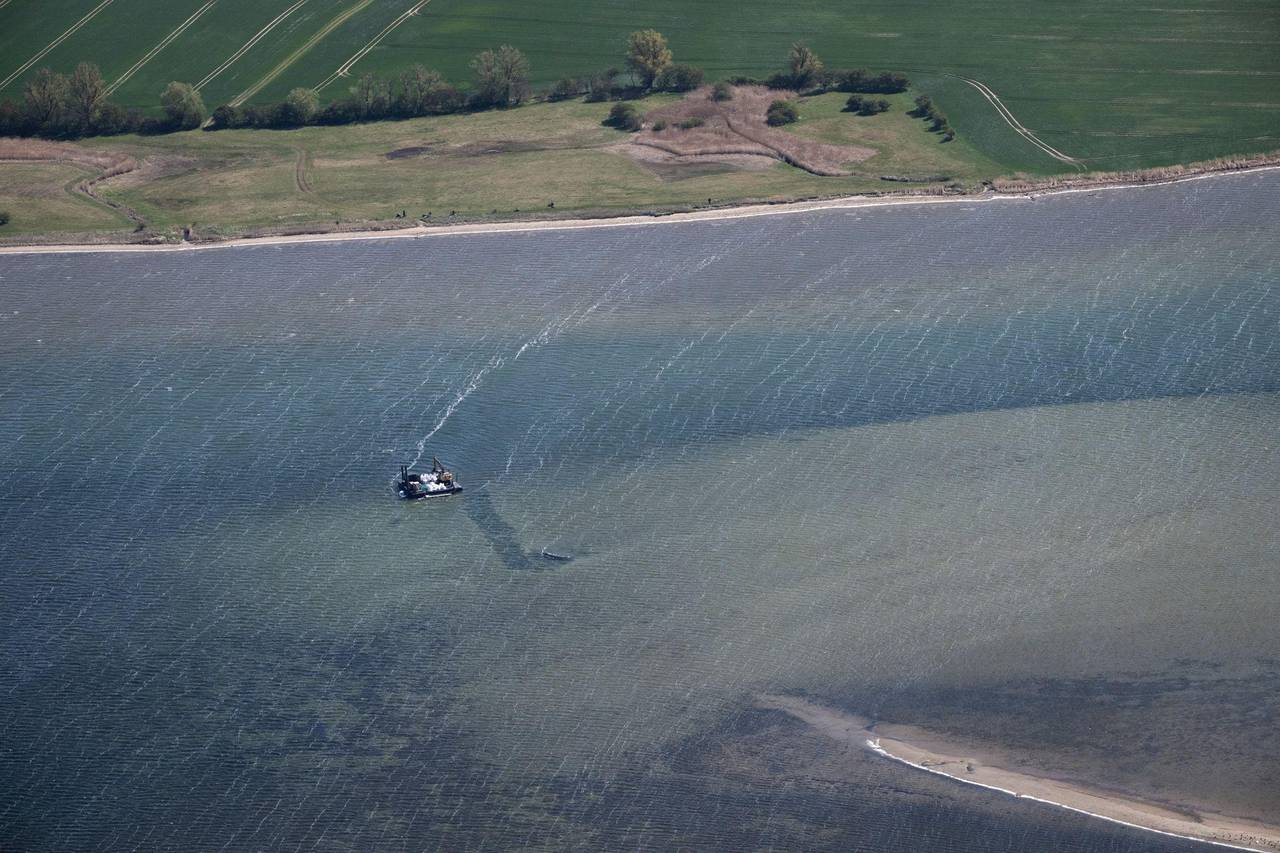 Am Vormittag waren rund 40 mit Sand gefüllte sogenannte Big Bags verladen und mit einem Schwimmponton in die Kirchsee-Bucht bugsiert worden. Dann wurde begonnen, sie am Wal zu platzieren. Als Barriere sollen sie verhindern, dass er sich bei steigenden Wasserständen noch weiter in die Flachwasserzone hinein bewegt. Am Sonntag sollte es höhere Wasserstände geben als in den Tagen zuvor. Schon einmal - am Montag - war das Tier bei steigendem Wasserstand plötzlich losgeschwommen.