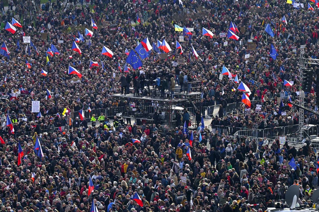 Weitere Kritikpunkte waren die jüngsten Kürzungen bei den Verteidigungsausgaben sowie geplante Änderungen bei der Finanzierung der öffentlich-rechtlichen Medien. Die Veranstalter sprachen von bis zu 250.000 Teilnehmern, die sich in einem großen Park auf der Letna-Ebene hoch über der Moldau versammelten.