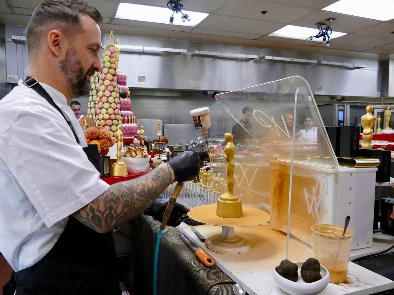 Natürlich gibt es bei den 98. Academy Awards auch wieder süße Trostpreise. Der französische Konditor Garry Larduinat richtet ein Sprühgerät auf eine Oscar-Statue aus feinster Bitterschokolade. Bis Sonntagabend werden 3.000 davon mit essbarem Gold bestäubt. «Das ist noch eine Menge Arbeit», sagt Larduinat mit einem Augenzwinkern. Doch kein Gast soll ohne einen Oscar nach Hause gehen.